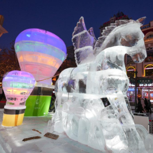 哈尔滨:冰雕景观为百年中央大街添彩