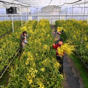 春节临近,年宵花市场持续升温,福建省宁德市周宁县高山冷凉花卉基地迎来采收上市高峰。各花卉企业大棚内,文心兰、大花蕙兰等年宵花卉竞相绽放,工人们忙着采摘、修剪、整形和包装作业,确保节日期间市场充足供应。
