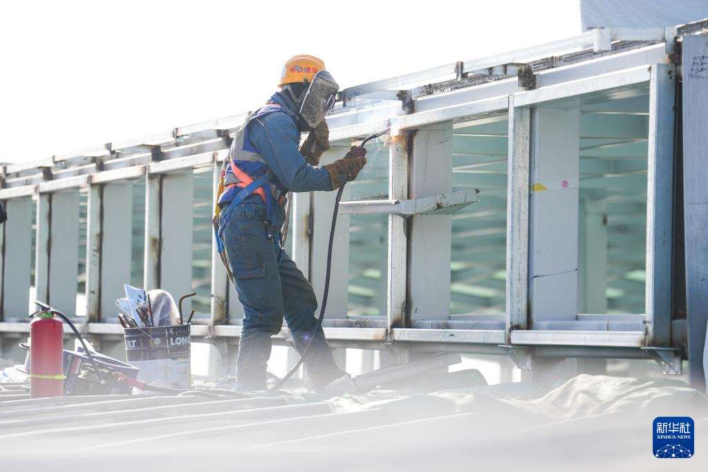1月15日,电焊工在西安东站金属屋面进行焊接作业。