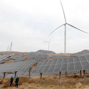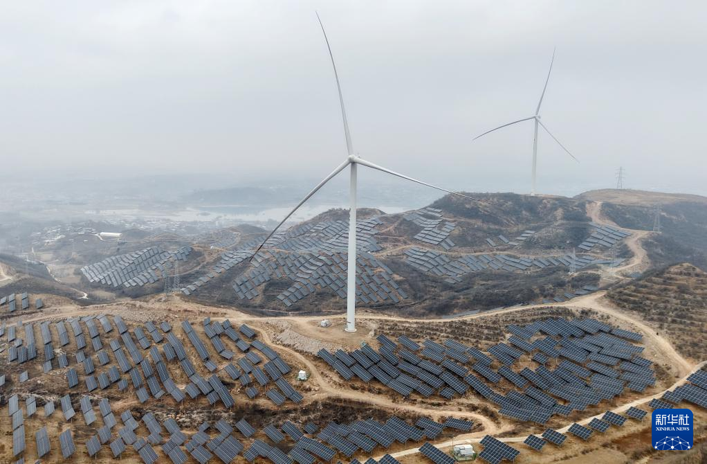 1月17日拍摄的河北省赞皇县院头镇曹家庄村附近的“风光互补”发电场(无人机照片)。