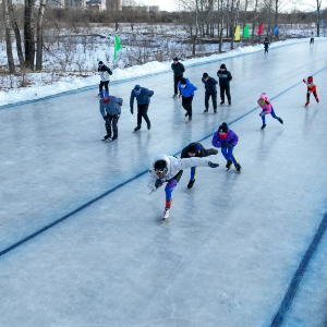 1月18日,市民在内蒙古呼伦贝尔扎兰屯市一处冰场滑冰(无人机照片)。