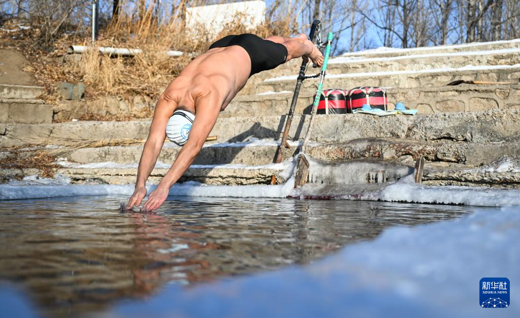 1月18日,市民在内蒙古呼伦贝尔扎兰屯市冬泳基地游泳。
