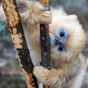 1月19日,一只金丝猴在神农架国家公园大龙潭金丝猴野外研究基地啃食树皮。