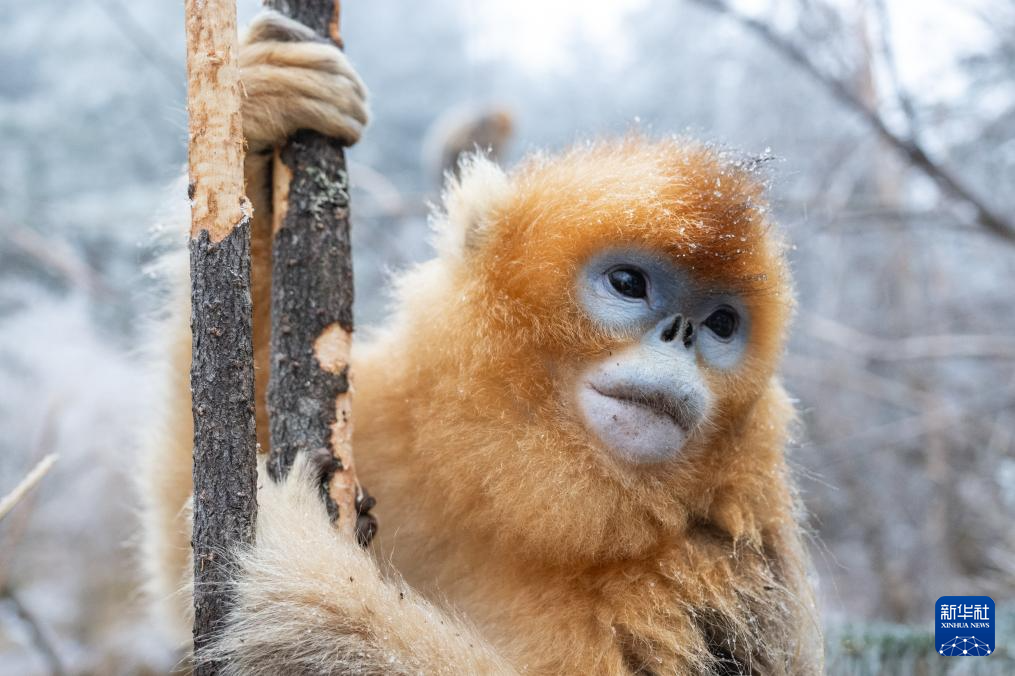 1月19日,一只金丝猴在神农架国家公园大龙潭金丝猴野外研究基地树枝上休憩。