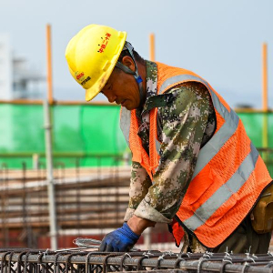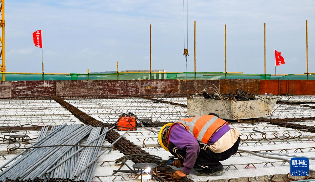 1月20日,工人在位于海南省三亚市海棠区的蜈支洲岛旅游区配套工程现场施工。