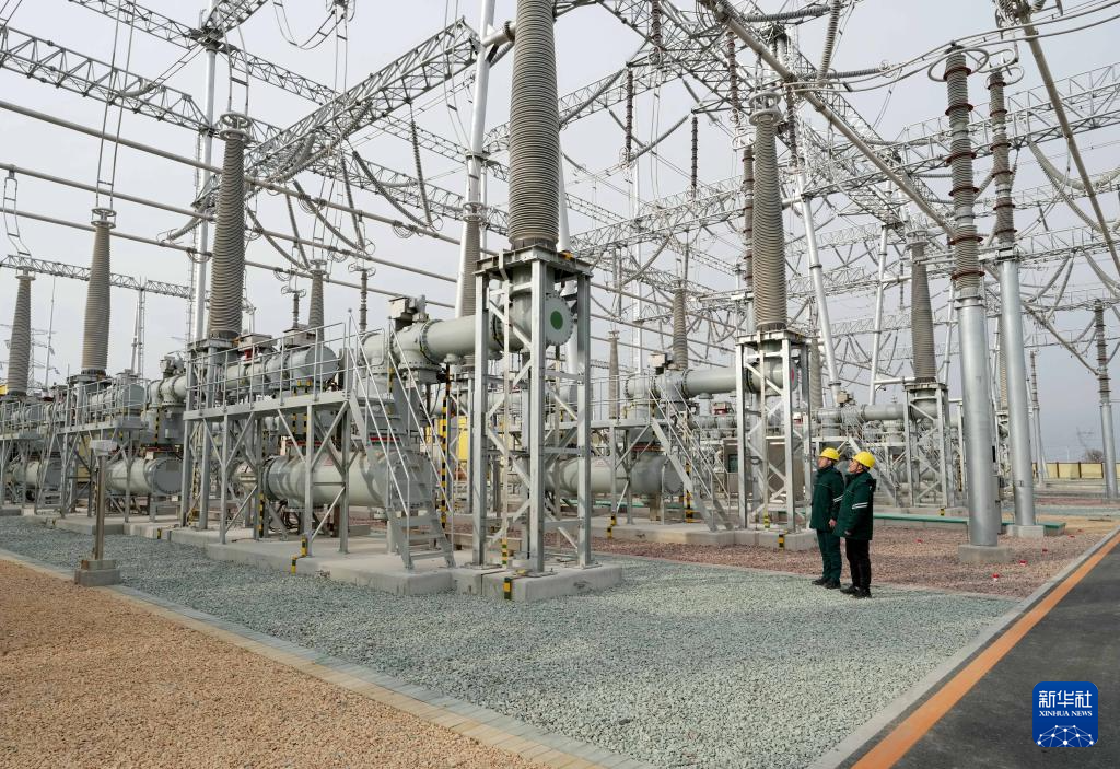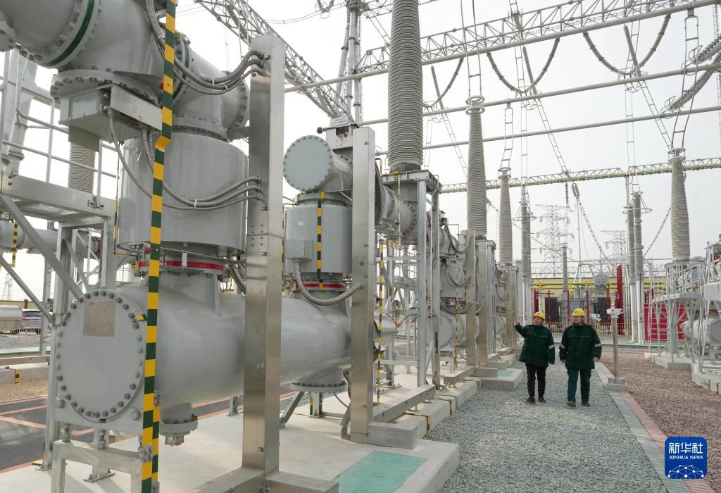 1月19日,工人在位于河北省宁晋县境内的国网邢台北500千伏超高压变电站巡检。