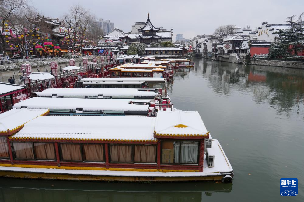 1月20日在南京夫子庙景区拍摄的雪景。