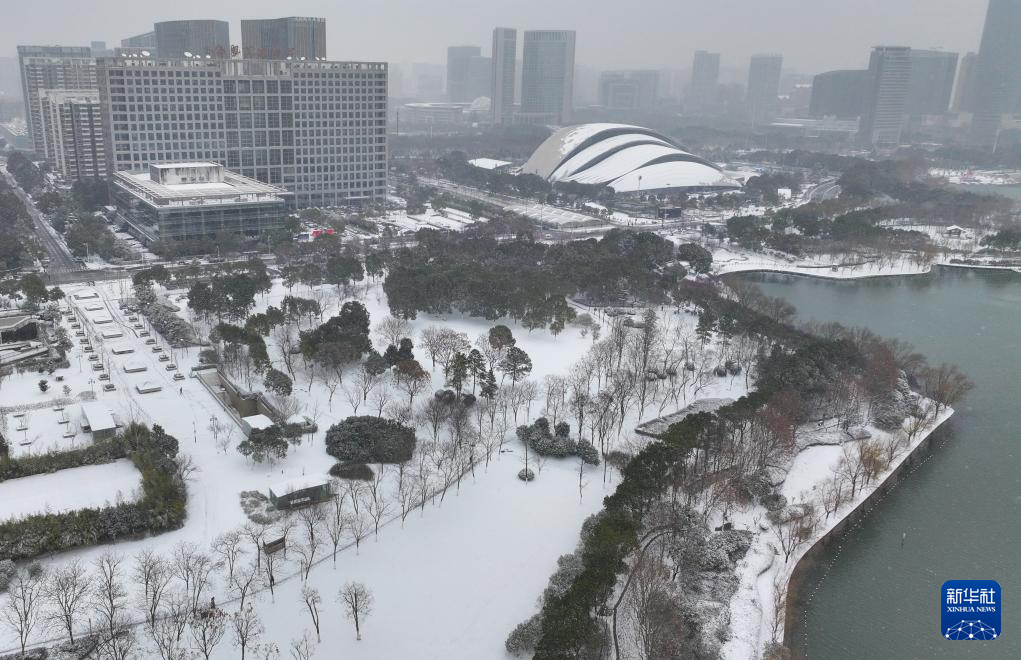 这是1月20日拍摄的合肥市雪景(无人机照片)。