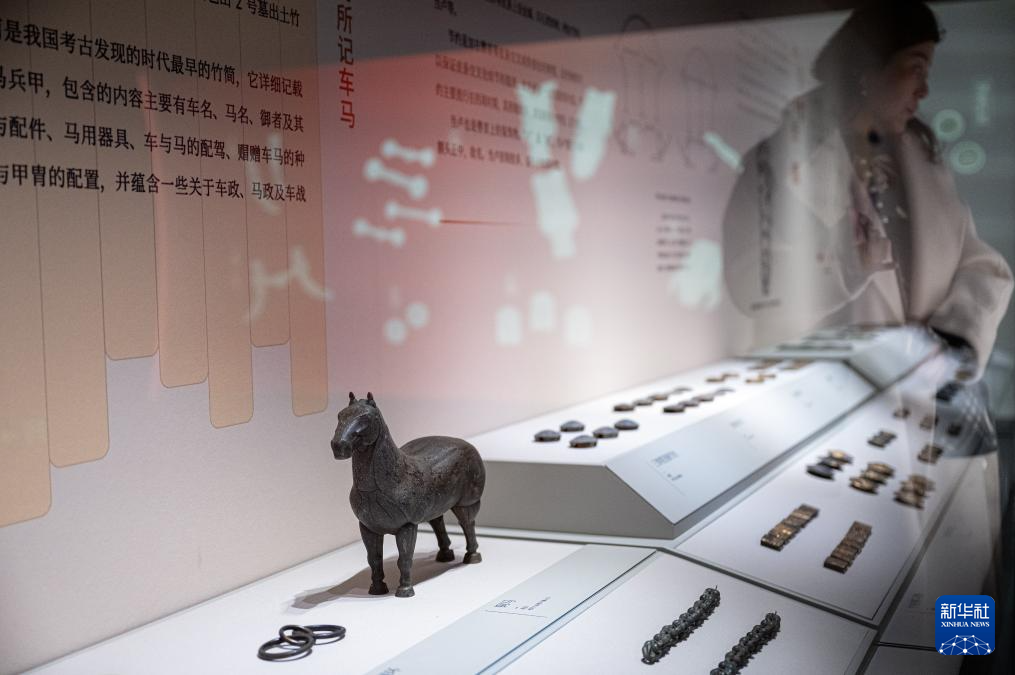 1月20日,枣阳九连墩2号墓出土的铜马在“湖北出土先秦车马兵器”展上展出。