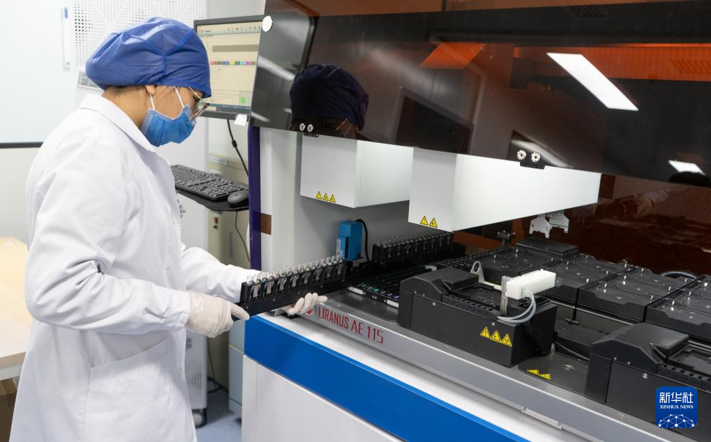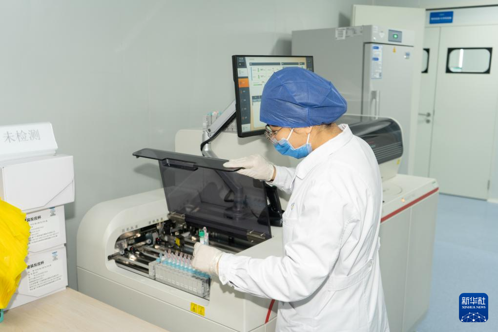 1月21日,保健中心医学检验部的工作人员操作检验仪器。
