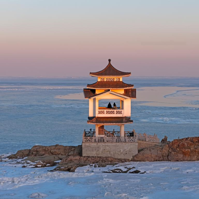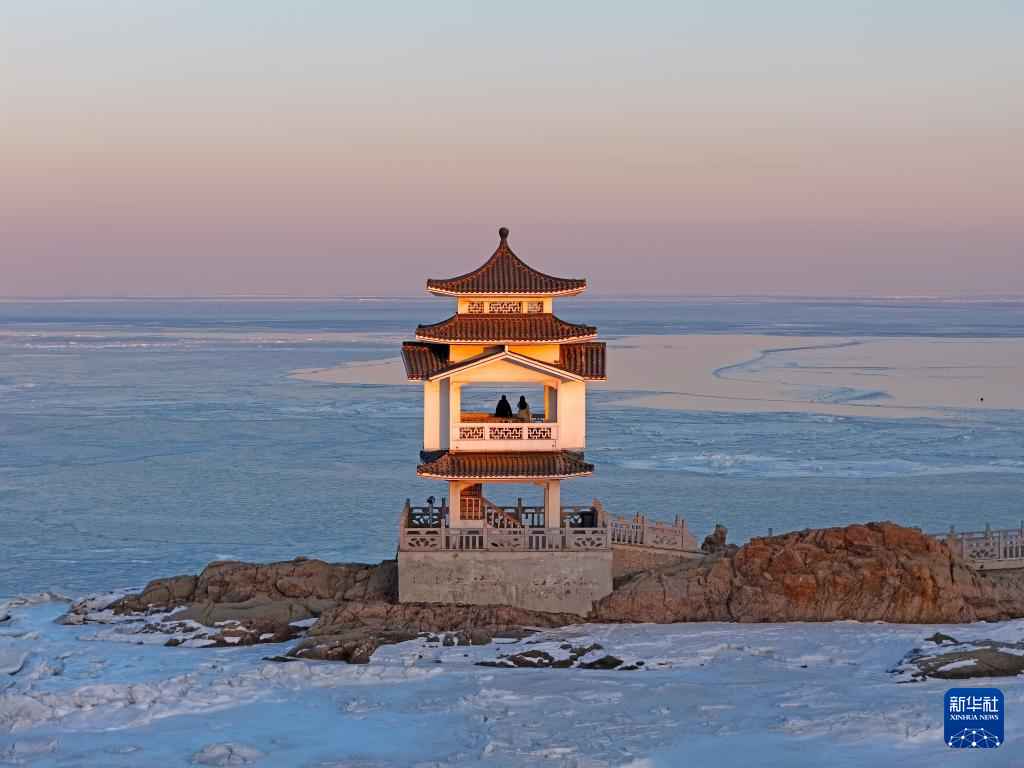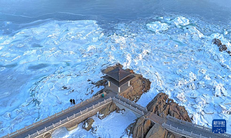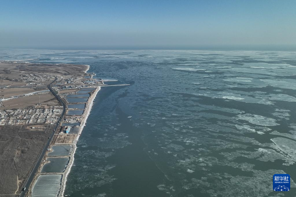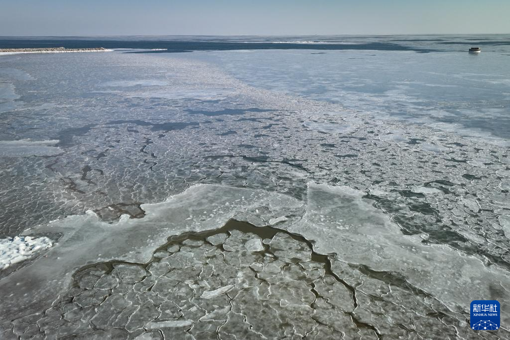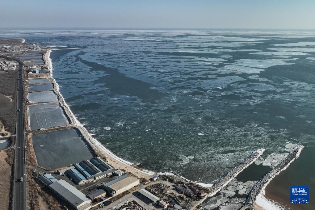 近日,受持续低温影响,辽宁省葫芦岛市附近海域出现海冰,形成独特景观。