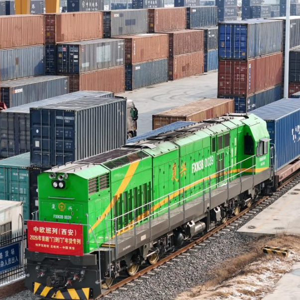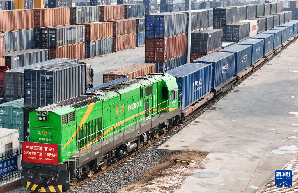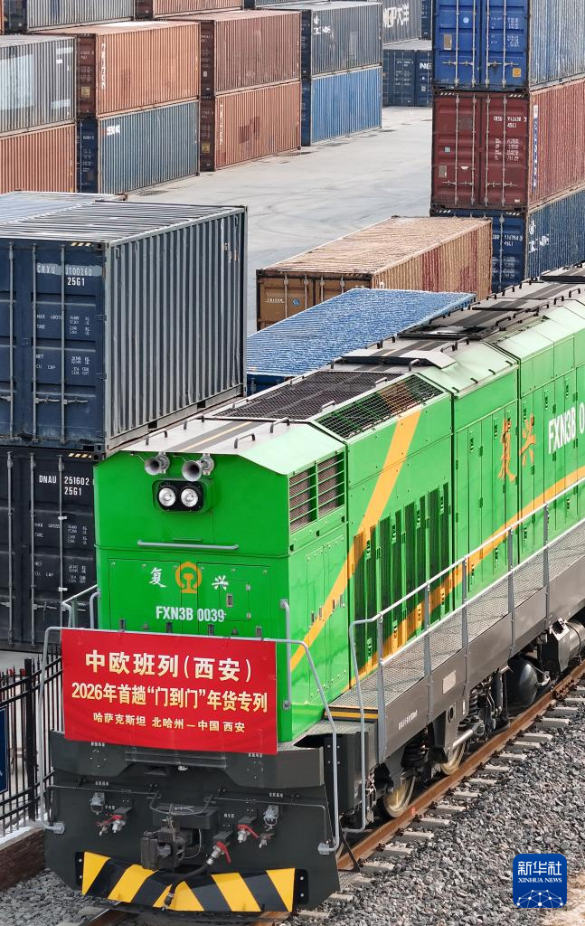 1月21日,2026年首趟中欧班列(西安)“门到门”年货专列满载着哈萨克斯坦成品粮油、蜂蜜等农产品驶抵西安。已连续开行三年的中欧班列(西安)“门到门”年货专列,实现从国外仓库发运到国内仓库收货的“门到门”运输,既有效提升货物运输效率、降低企业运输成本,又丰富春节市场供应。