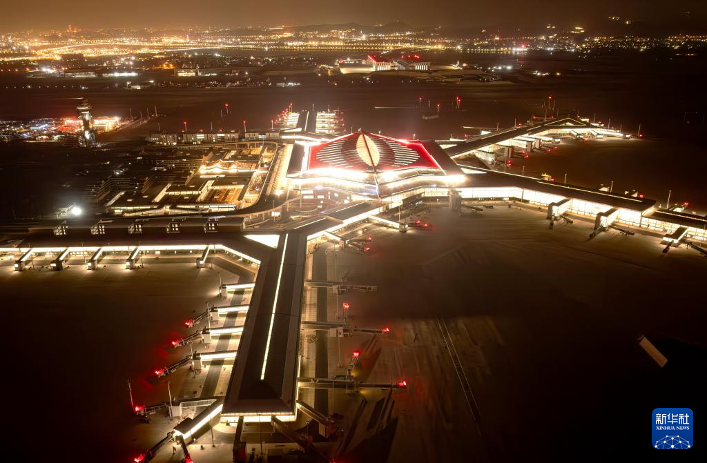 这是1月20日航拍的厦门翔安国际机场夜景(无人机照片)。