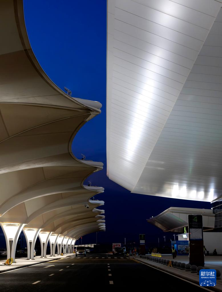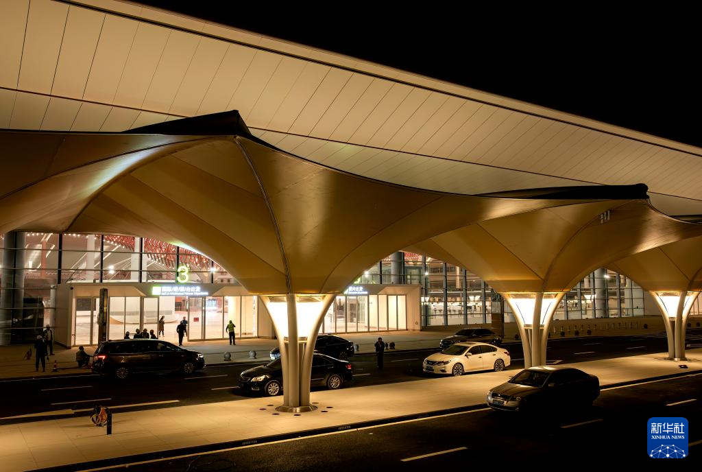 这是厦门翔安国际机场航站楼出发层夜景(1月20日摄,无人机照片)。