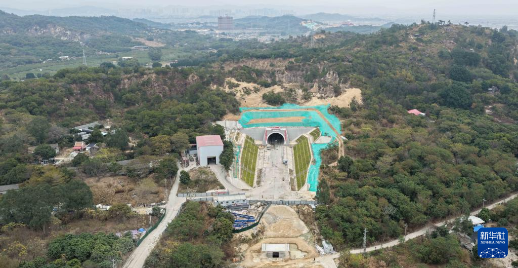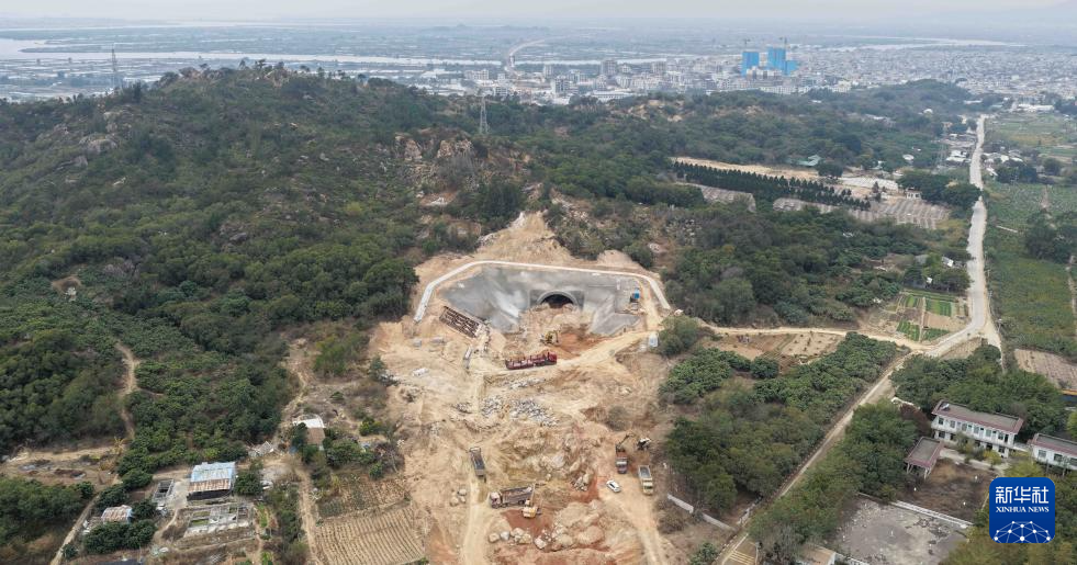 1月21日拍摄的漳汕高铁马金山隧道施工现场(无人机照片)。