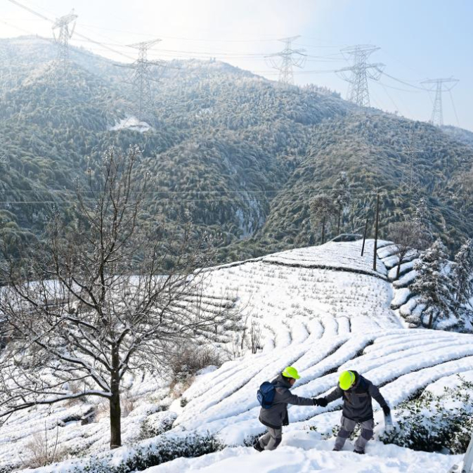 近日,受寒潮影响,位于大别山腹地的安徽省六安市金寨县迎来低温雨雪天气,部分输电线路出现覆冰情况,给线路安全带来隐患。