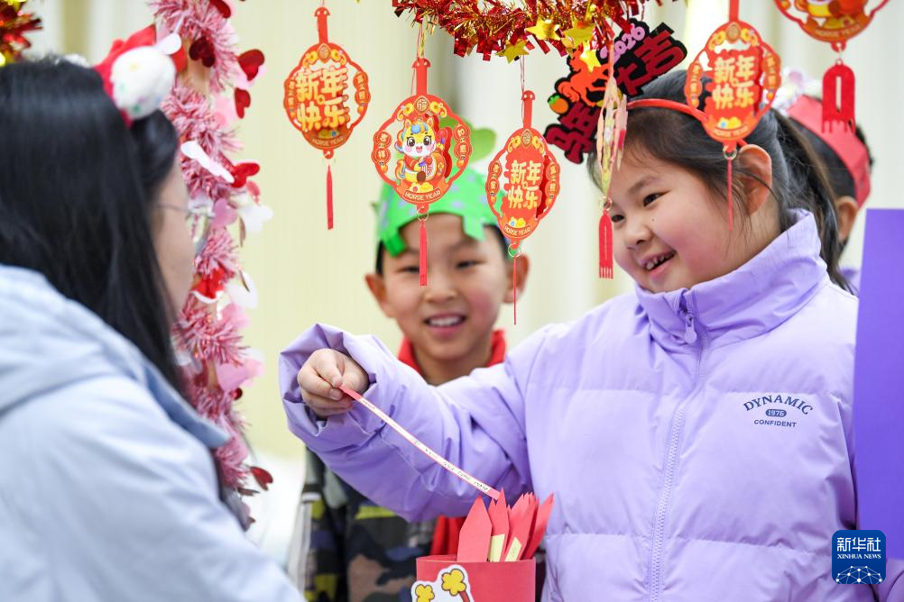 1月22日,在河北省石家庄市仁华小学“乐考”活动中,小学生们进行“智算小骏马”趣味游戏。