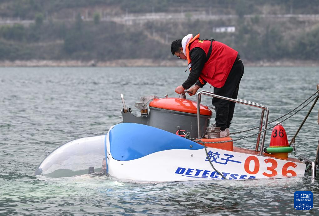 1月21日,重庆坤联机械制造有限公司技术人员在重庆巫山双龙湖进行潜水器测试工作。