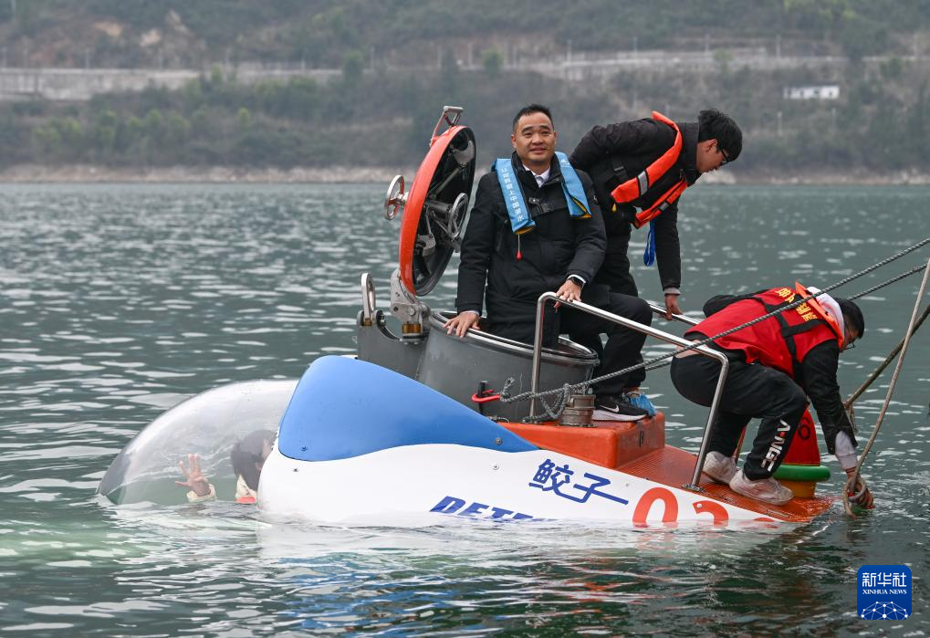1月21日,“鲛子”号水下载人观光潜水器在重庆巫山双龙湖进行交付前测试。