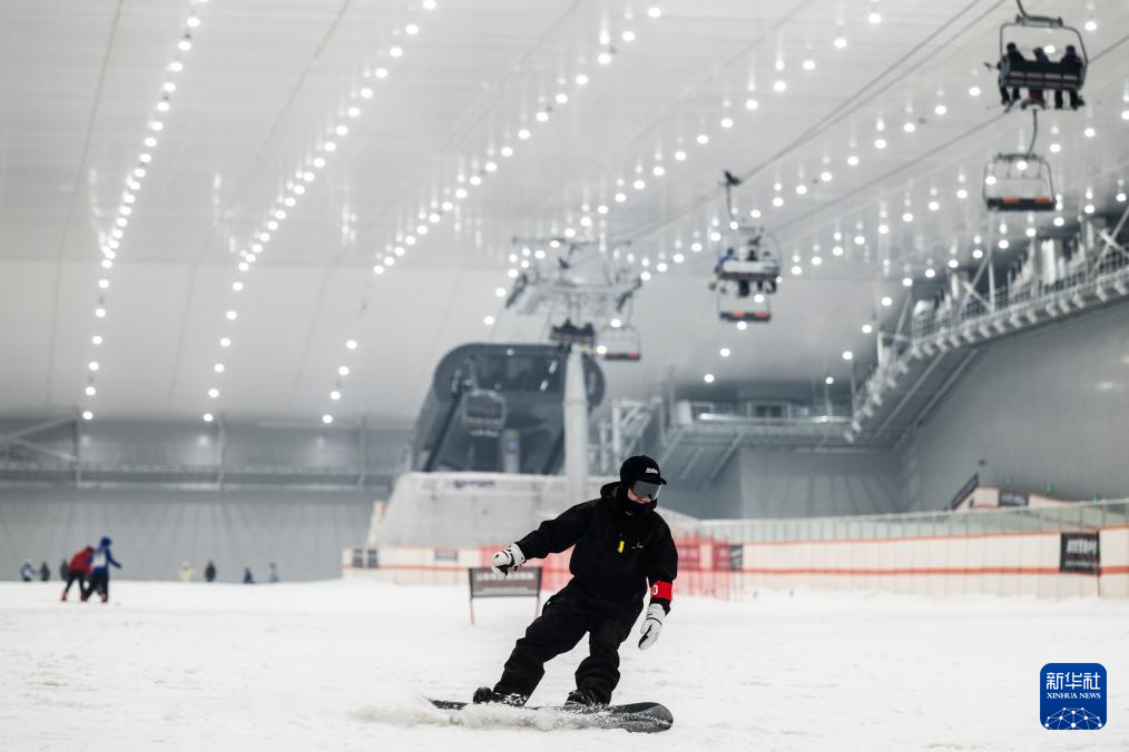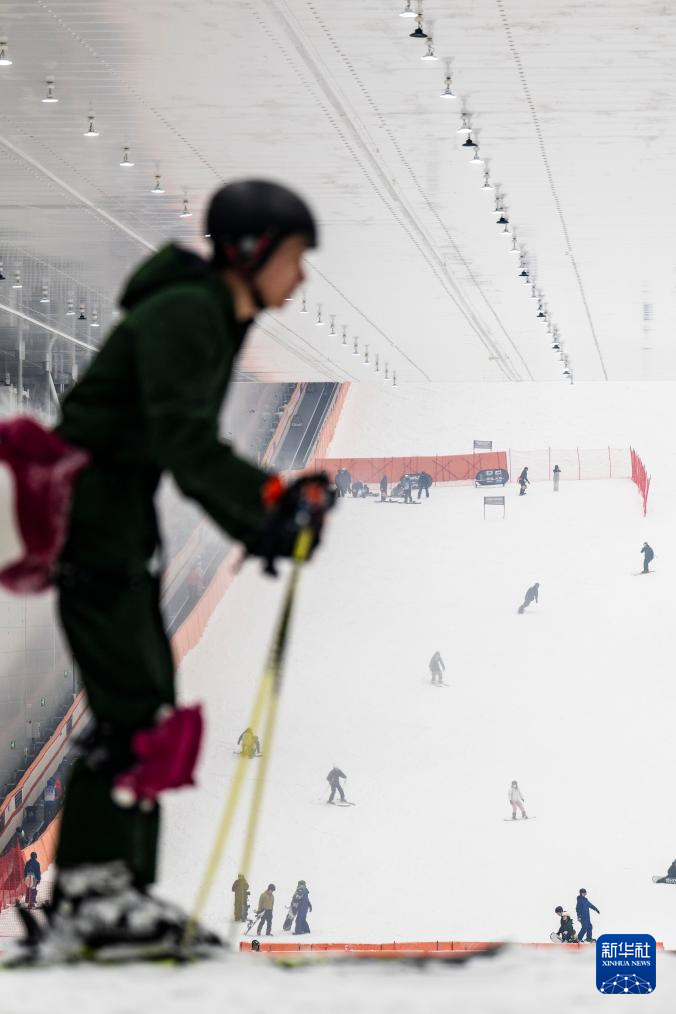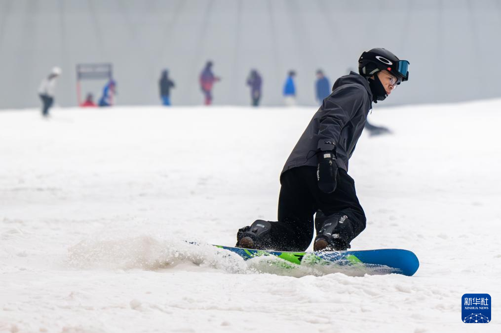 1月13日,游客在武汉城建热雪奇迹室内滑雪场滑雪。