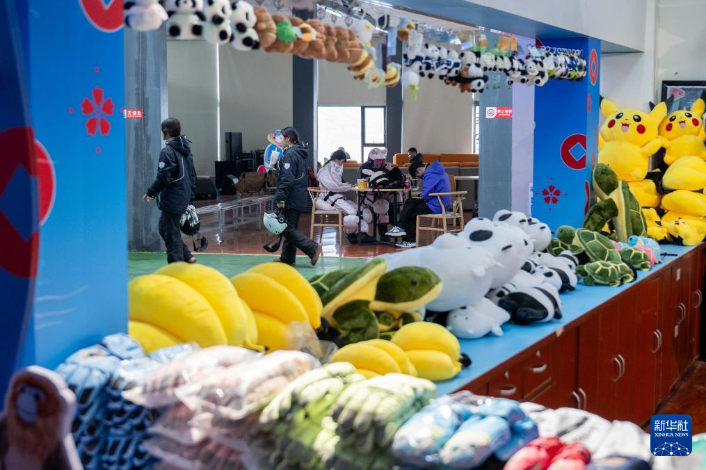 1月20日,游客在神农架国际滑雪场租赁滑雪装备。