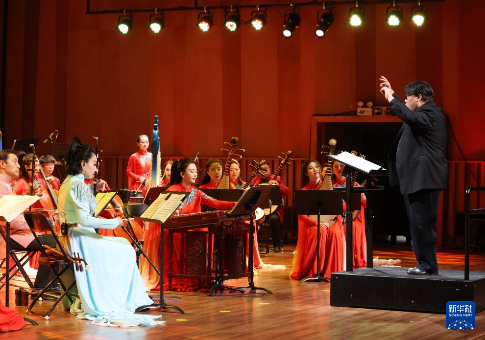 1月23日,2026湖北省迎新春新民乐惠民展演在武汉中南民族大学光谷音乐厅举行。展演现场,歌曲、舞蹈、戏曲等具有荆楚特色的文艺节目轮番上演,市民在欢乐喜庆的气氛中迎接新春佳节。