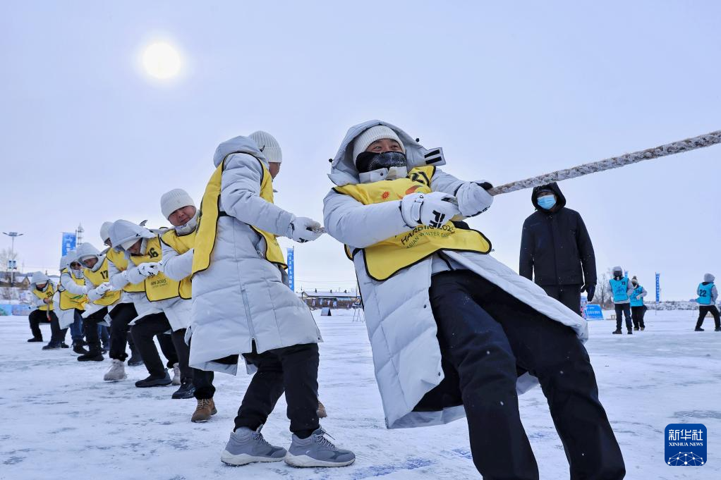 1月23日,赫哲族群众在街津口赫哲族乡冬捕活动现场开展民俗体育活动。