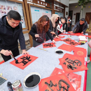 1月23日,浙江省诸暨市东白湖镇在镇乐龄中心举办“福马迎春”年味大集暨“好美诸暨 好戏连台”村晚活动。舞台上村民们自编自演的越剧、舞蹈、旗袍秀等节目精彩纷呈,活动现场同步开展了打麻糍、书法送福、非遗竹编、年画拓印等一系列体验活动以及展示当地农特产和文创产品的“村村有好物”大集等,在欢乐喜庆的气氛中迎接新春。