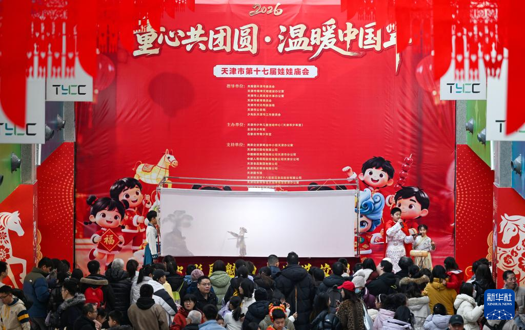 1月24日,天津市第十七届娃娃庙会在天津市少年儿童活动中心热闹开街。本届庙会以“童心共团圆 温暖中国年”为主题,设有非遗手工艺制作、津味非遗美食品鉴、游戏互动等活动,吸引了众多家长和儿童到场体验,感受年味和传统民俗文化的魅力。