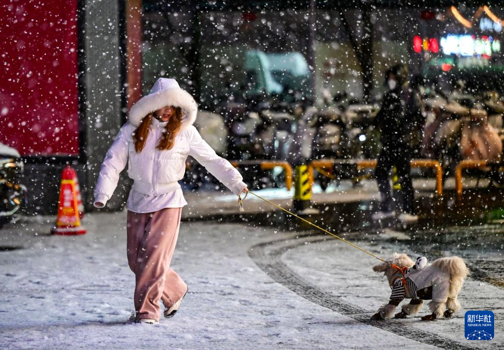 1月17日,市民在北京定慧桥附近冒雪出行。