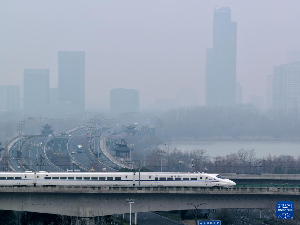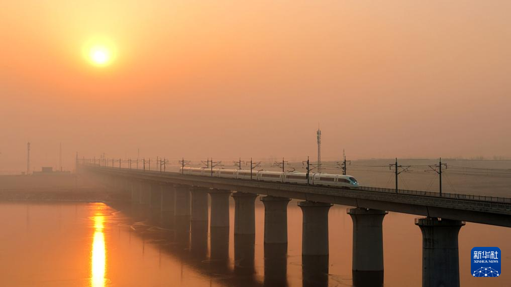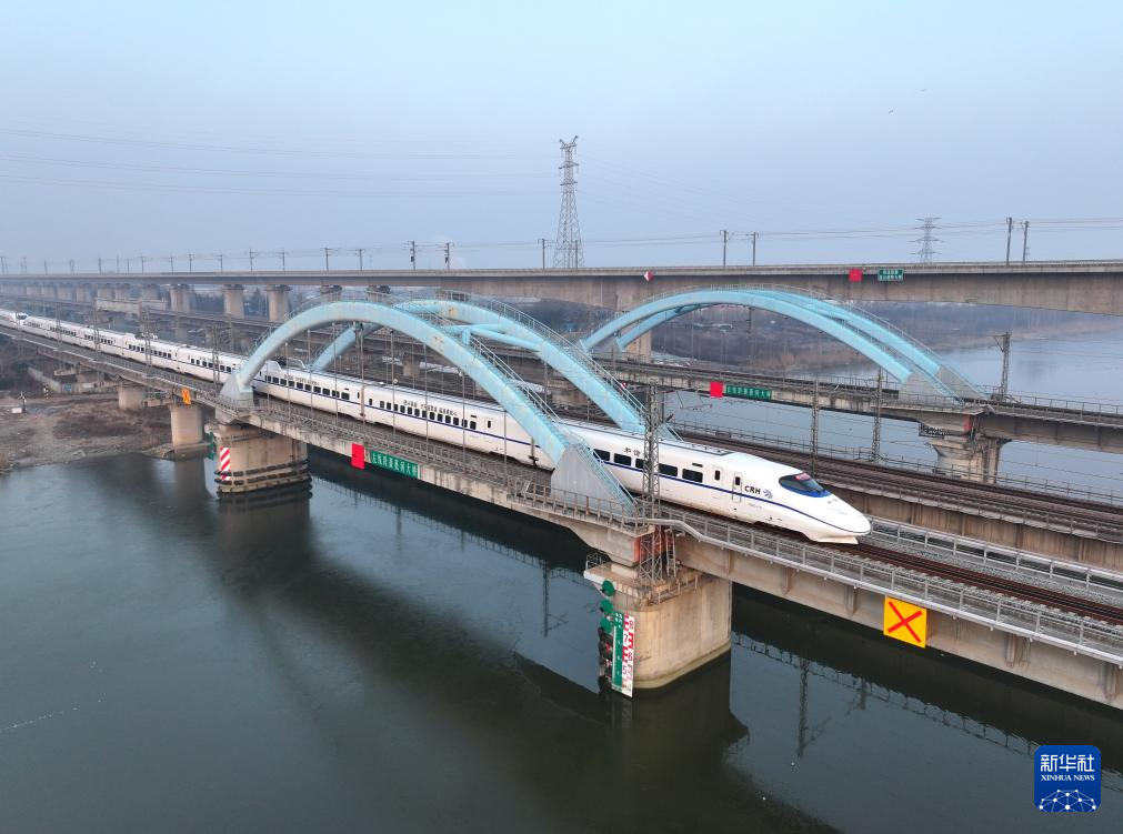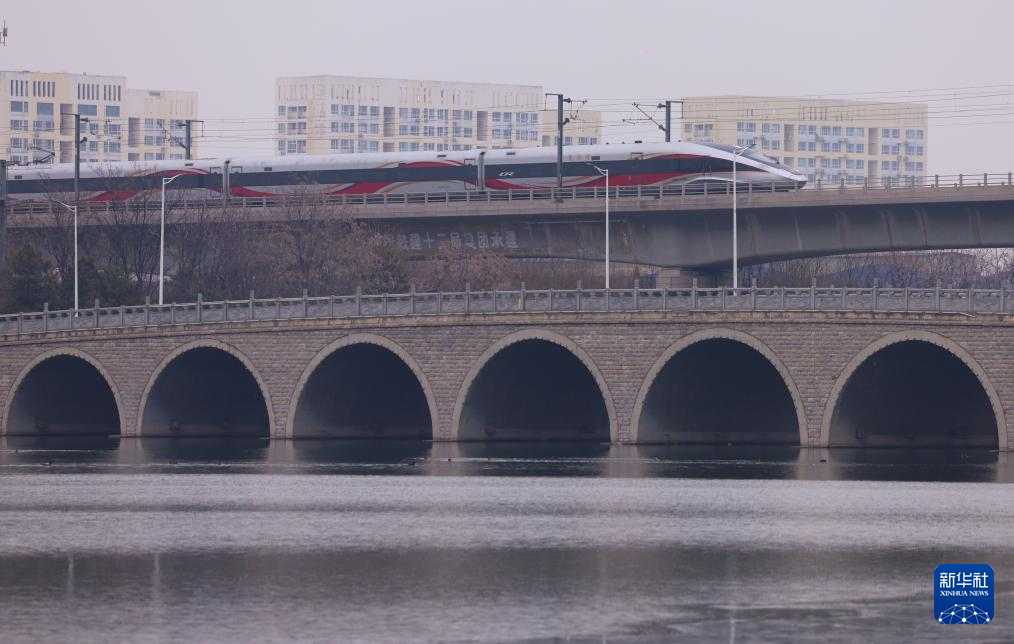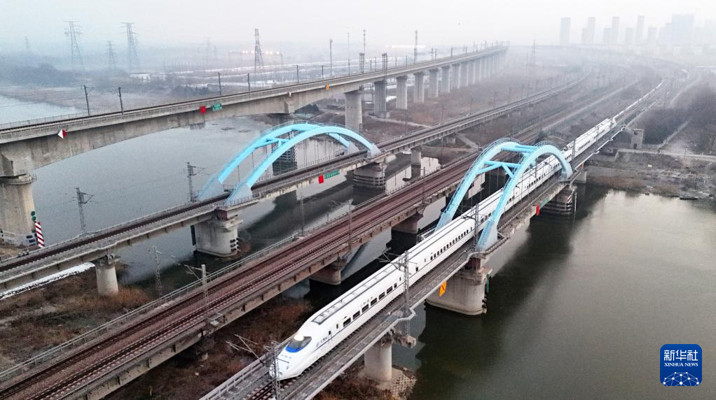 1月25日,一列动车组列车在河北省石家庄市境内行驶。