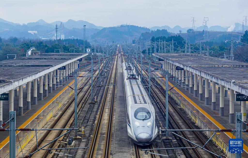 1月25日,动车组列车行驶在云南省景洪市境内的中老铁路上。