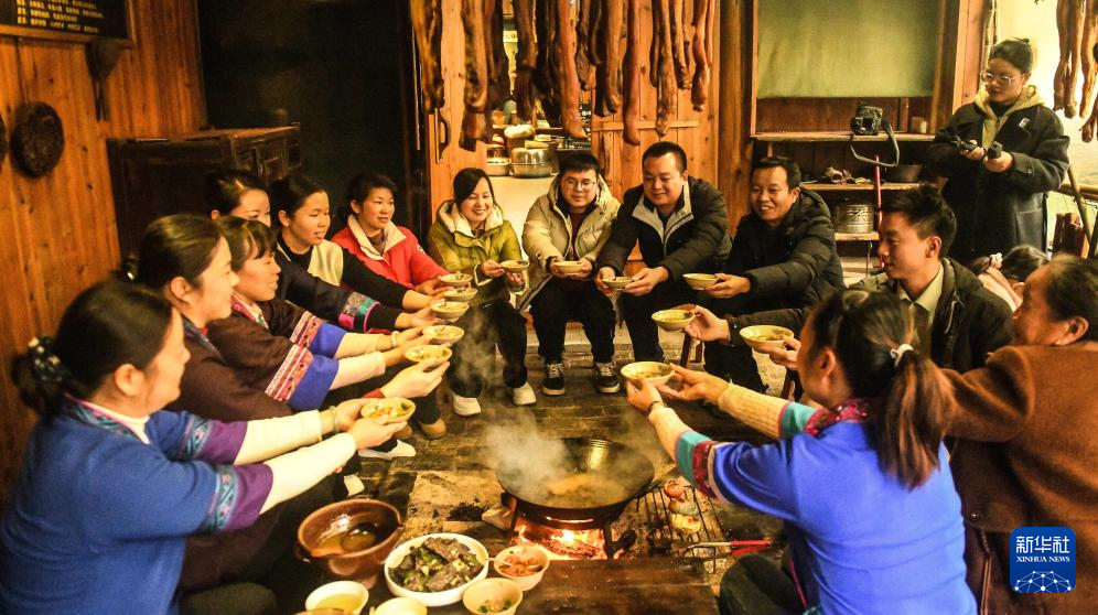 1月26日是中国传统的“腊八节”。广西三江侗族自治县的侗族群众相聚山寨,喝油茶、打糍粑、做糯米饭,欢庆“腊八节”。