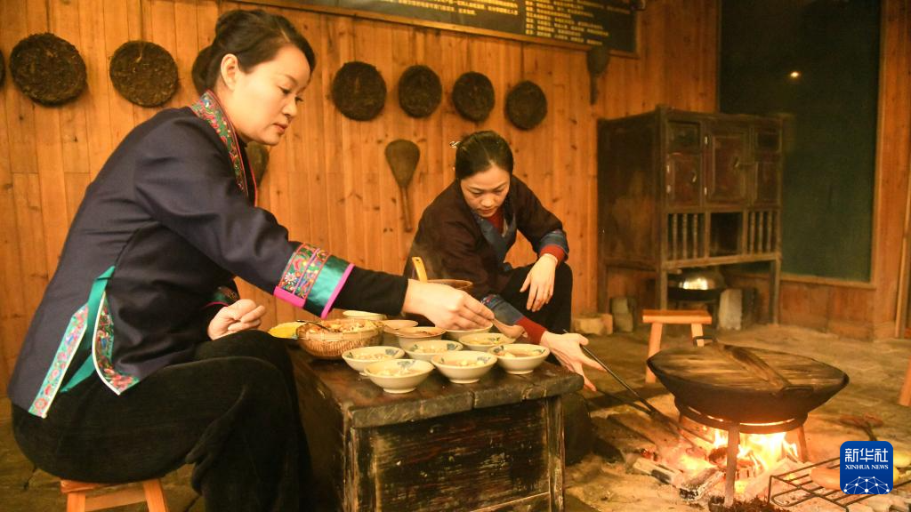 1月26日,三江侗族自治县斗江镇牙林村侗族群众在喝油茶庆祝腊八节。