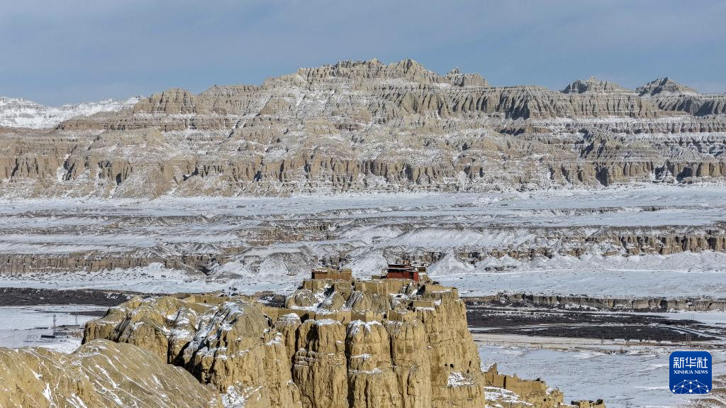 1月24日,西藏阿里地区札达县迎来降雪,全国重点文物保护单位古格王国遗址披上银装,呈现壮美雪景。
