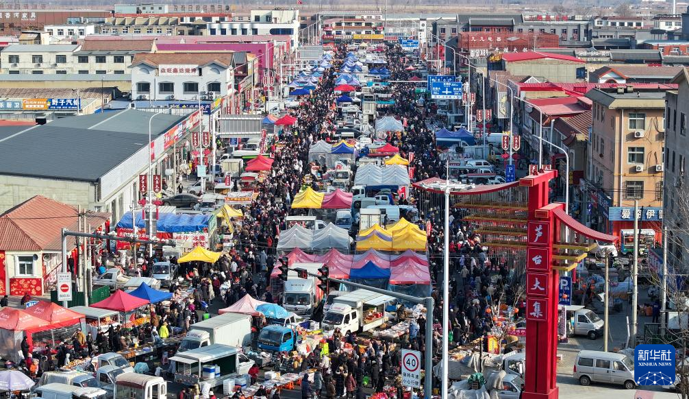 这是1月26日拍摄的天津芦台大集(无人机照片)。