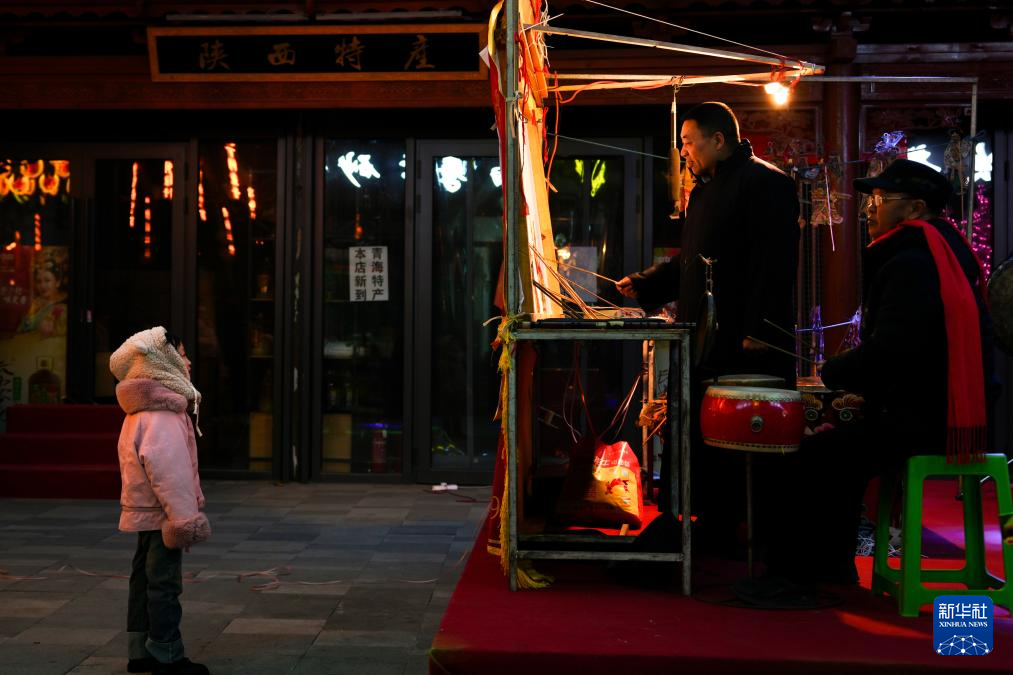 1月25日,一名小朋友在青海省西宁市城北区观看皮影戏。