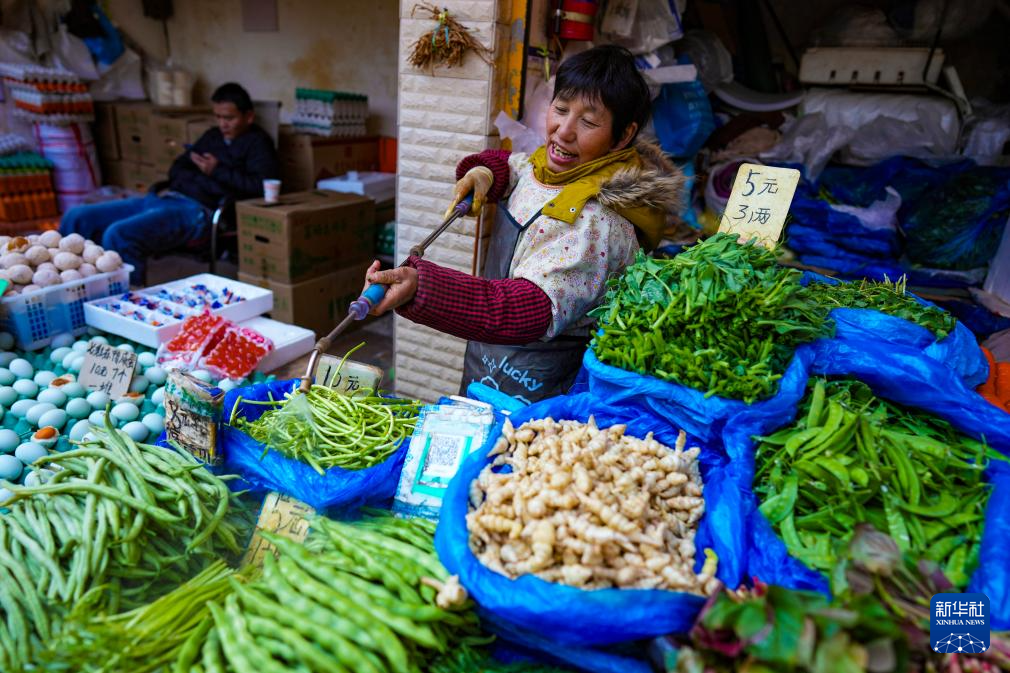 1月27日,人们在昆明大观篆新农贸市场内游览、购物。