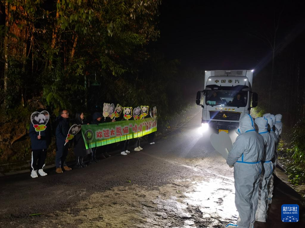 1月28日凌晨,大熊猫“晓晓”“蕾蕾”抵达中国大熊猫保护研究中心雅安基地。