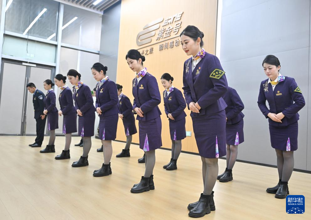 1月28日,中国铁路上海局集团有限公司南京客运段高铁二车队乘务人员进行服务礼仪培训。