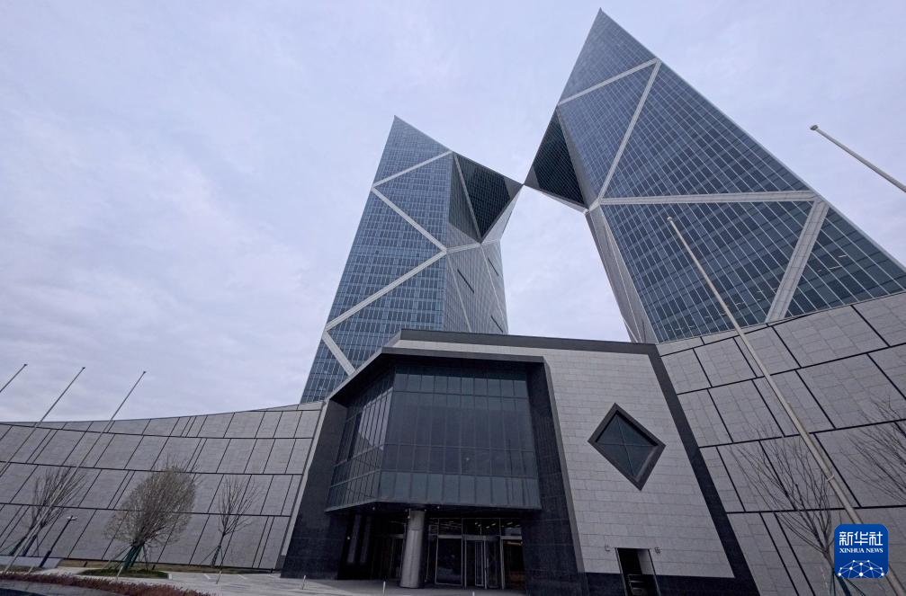 1月29日拍摄的位于滴水湖畔的临港西岛中银金融中心双子塔楼。