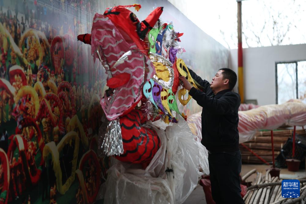 代鑫在查看一条已经制作完成的毛龙(1月27日摄)。