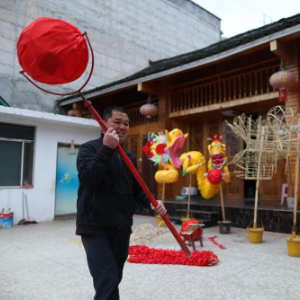 代鑫是这一民俗文化的国家级非遗代表性传承人,他的父亲代尚福是民间竹编手工艺品知名工匠,不仅熟练编扎毛龙、擅长毛龙玩舞,还精通龙符事说唱腔调艺术。如今,78岁的代尚福编扎起毛龙来依旧娴熟自如。“早不早迟不迟,正是弟子扎龙时……扎得龙腰长八尺,八方人民保安康……”老人随口哼起的民间扎龙说唱词,既是技艺的传承,更是文化的印记。