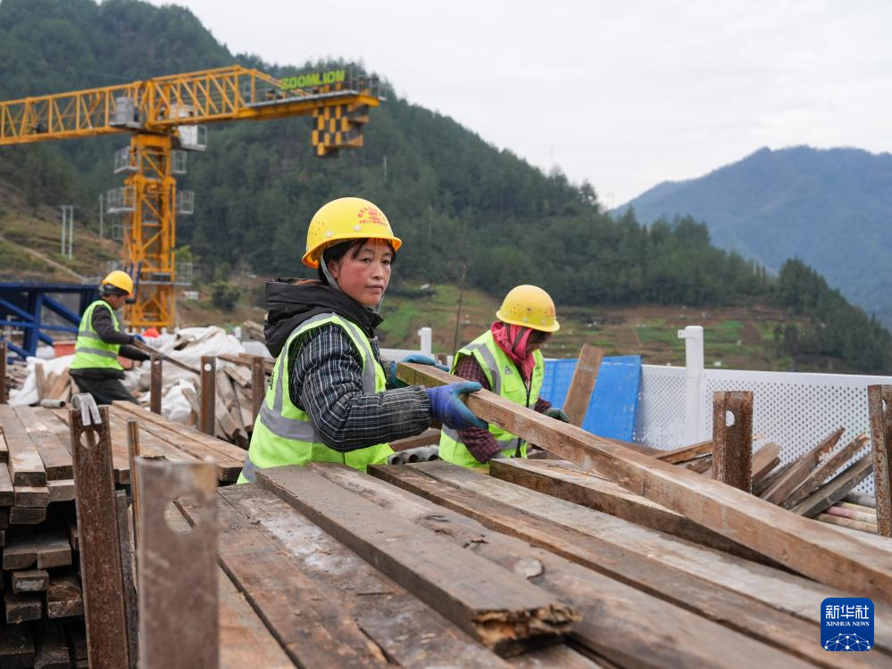 1月30日,建设者在西渝高铁渡口大桥施工作业。