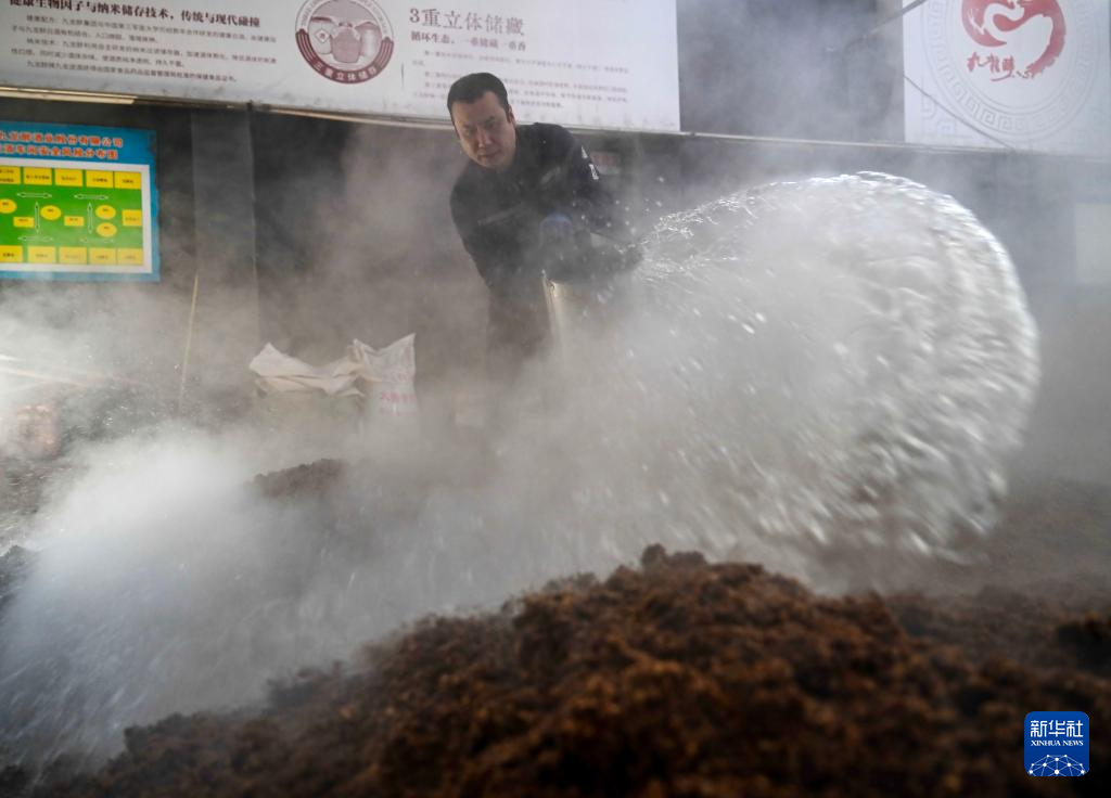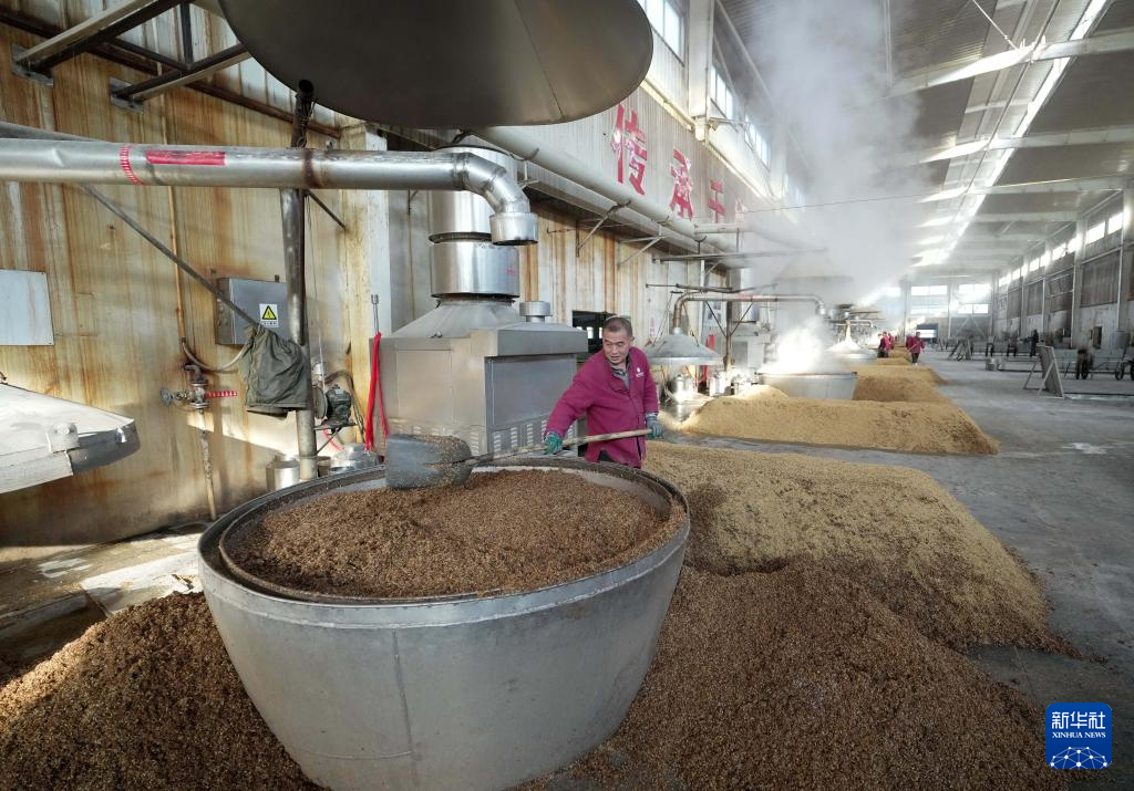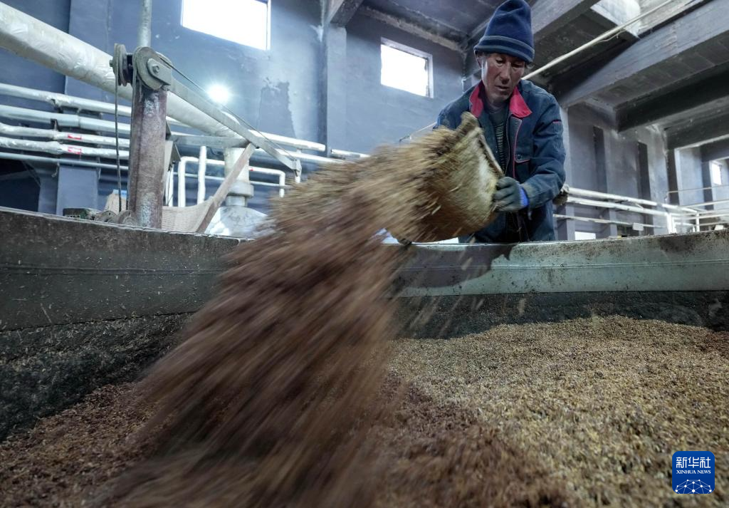 1月27日,工人在河北省丰宁满族自治县承德九龙醉酒业股份有限公司酿造车间工作。