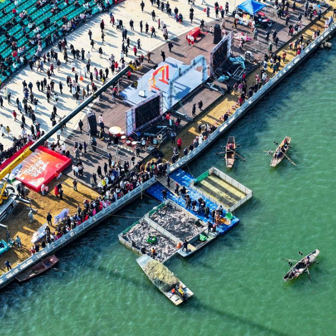 1月31日,2026溱湖湾冬捕活动在江苏省泰州市姜堰区溱湖湾举办,渔民们在溱湖水域开展冬捕作业,湖区水域呈现出一派人欢鱼跃的丰收景象。