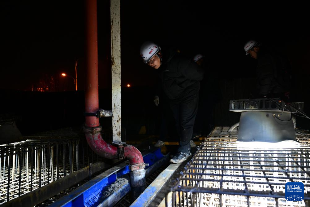 1月31日拍摄的合池铁路全线首个桥墩浇筑施工现场。