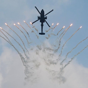 2月1日,在新加坡樟宜展览中心举行的新加坡航展媒体预演上,一架新加坡空军阿帕奇AH-64D直升机进行飞行表演。