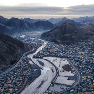 这是1月30日拍摄的青海省玉树藏族自治州杂多县冬景风光(无人机照片)。