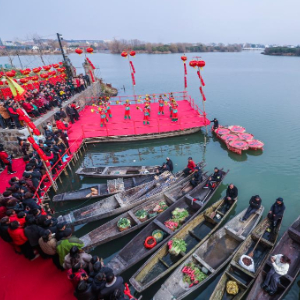 临近春节,浙江省杭州市临平区塘栖镇莫家桥村举行传统民俗过大年活动,在水乡河边搭建戏台,上演舞蹈、武术、传统越剧等节目,同时在现场进行打年糕、写春联、做米塑等活动,重现了水乡古镇传统的过年民俗,为即将到来的新春佳节营造浓浓的喜庆气氛。